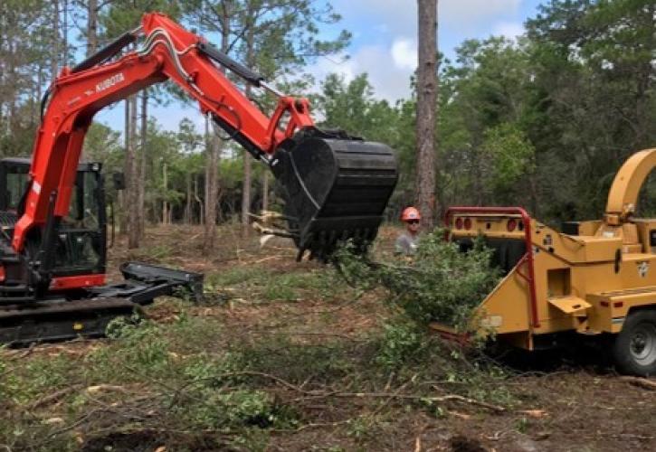 To date nearly $8 million has been awarded to the Florida Park Service and the Atlanta Botanical Garden to restore the wetlands through removal of trees and woody shrubs, coppice mowing, prescribed burning and targeted species re-introductions. Using various equipment - including excavators, track loaders, compact feller bunchers, chippers and haulers - the crew cuts the titi out of the wetlands, chips the material and stages it for removal to a local paper mill.