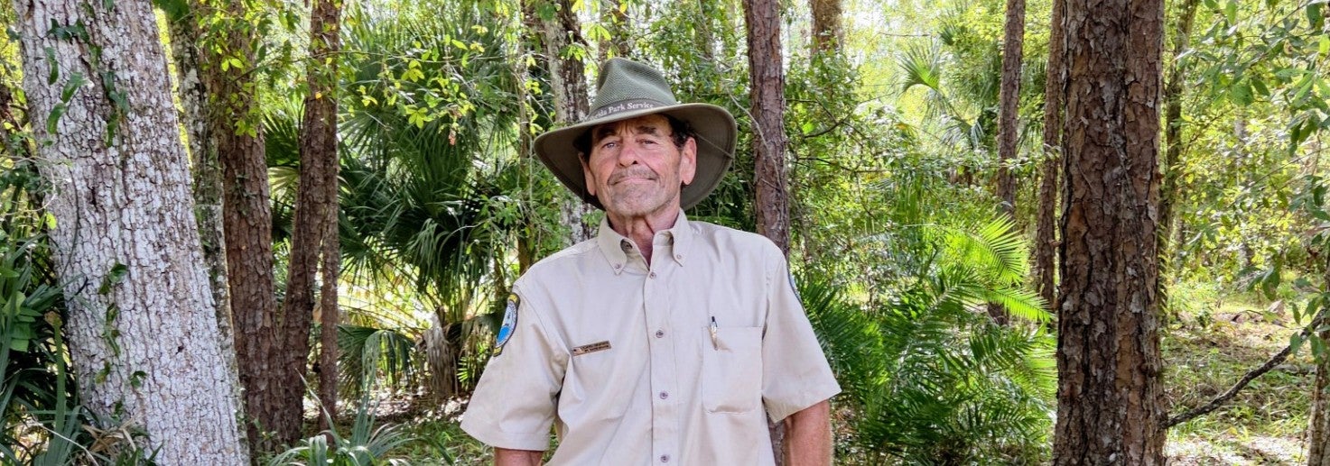 Carl later transitioned from being a resident volunteer at Highlands Hammock to becoming the OPS Heavy Equipment Operator. He is often on a tractor or skid steer clearing brush, removing vegetation and excavating fire lines throughout the park and at Lake June-in-Winter Scrub Preserve. Carl likes the solitude of working in the woods, but he is also by nature, a real “people person” who enjoys answering the questions of curious visitors. Carl truly loves the park and values the friendship of staff, volunteers and campers.
