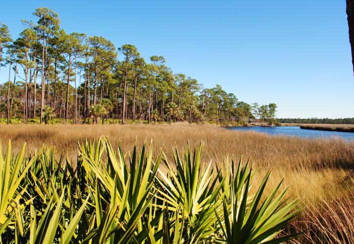 Pellicer Creek is a popular site for birding with more than 100 bird species during spring and fall migrations. Songbirds, including the colorful wood warblers, along with eagles and falcons return to nest at the park each year. Wading birds such as egrets, wood storks, white ibis and herons feed in the tidal marshes and creeks. This peaceful park is also home to deer, turkeys, hawks, bobcats and river otters.