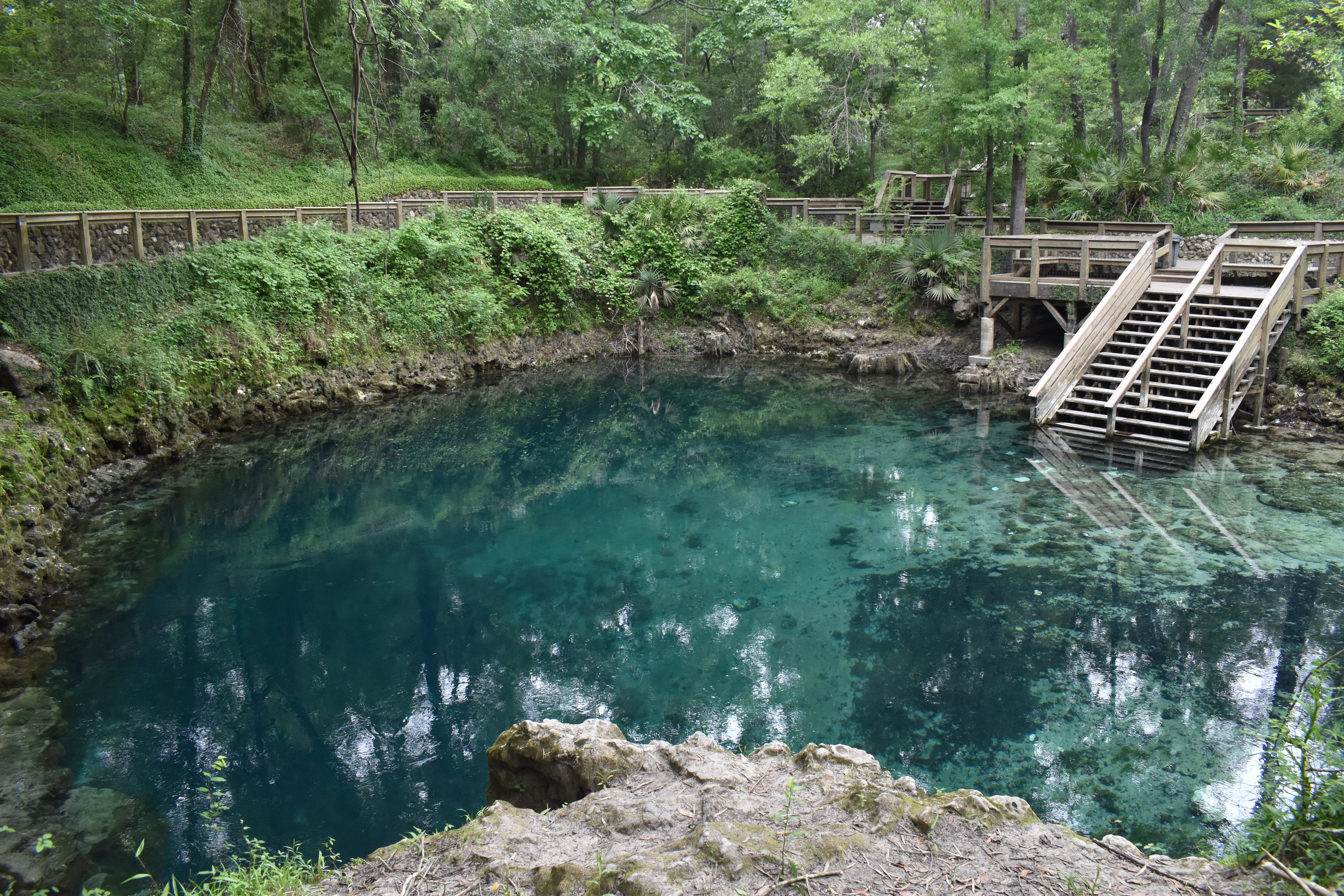 About 82 feet wide and 25 feet deep, the spring bubbles up into a limestone basin along the west bank of the Withlacoochee River. Scenic woodlands of mixed hardwoods and pines create a picturesque setting for picnicking, paddling and wildlife viewing.